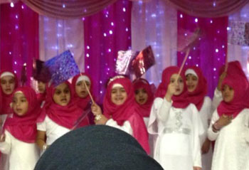 The preparation of this event stared in October 2013. In order to get the children ready for the event and inculcate in them the love of Prophet Muhammad (SAW) into their hearts, the importance of reciting daroud Sharif was emphasised. Every evening, the girls of Fatimah House and Aisha House would present their durood sharif to their teacher, which would then be collated by sister Afshaan with the intention to present it in the honour of the holy Prophet (SAW) on the Milad day. Through this method, it was evident that there was a change in their behaviour and imaan. The girls started to get their mothers, aunties and sisters to start reciting daroud Sharif in order to beat the other class. Alongside the daroud recitation, sister Rehana also started to help practice naats, and nasheeds with the girls and younger boys every Friday during assembly. Through this way we were preparing the children gradually and allowed organisers plenty of time to bring in any changes needed. Alongside these activities the fundraising for the event also started to take shape at the end of the month of Muharam. Letters were written to inform the parents that a mawlid event would be taking place for which during the next 6 weeks various activities will be conducted. Sister Afshaan was leading the way in organising these activities and motivating the girls to do better. As expected the parents co-operated very well with the teachers and the organisation of the event. The children and their parents contributed very generously. The girls of Fatimah House got involved and took responsibility of going around the classes and collecting money from the children. They also baked cupcakes and cakes which they donated for week 5. This was a brilliant opportunity to take up new responsibilities and learn skills. Many parents really appreciated this effort. Through these activities and donations, we were able to collate over £620, which is a huge achievement for the young girls and boys of the Centre, which was to be used for a mawlid event. The teachers as well as students really enjoyed these 6 weeks of preparation. A note to be remembered is that in addition to these activities, children were also reciting daroud Sharif and practising naats. Hence teachers were putting in a lot of hard work making sure that in addition to this work, their educational activities were not being affected. By now the organisers had also started to plan how they saw the event taking place. They shared the vision and all sisters knew what they wanted from the outcome, hence making it easier to organise. The first aspect that was confirmed was the colour scheme for the event it was decided that the children would wear white clothes and pink scarfs. Sister Rizwana was able to obtain pink scarfs at a wholesale price. Letters were written again to inform parents about wearing white clothes so that all girls are wearing the same shade of pink. To our surprise the response was overwhelming.
