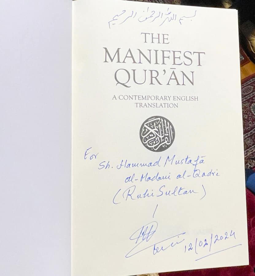 His Eminence, Shaykh ul Islam Dr Muhammad @TahirulQadri, graciously signed the inaugural copy of the Manifest Quran, presenting it to Shaykh Hammad Mustafa al-Madani al-Qadri in the United Kingdom.