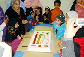 پروگرام میں کیک کاٹنے سے قبل ایک مرتبہ پھر منہاج القرآن کے طلبہ نے حافظ محمد عاطف احتشام کے ساتھ مل کر حضور شیخ الاسلام کی شان میں مشہور زمانہ ترانہ (ظلمت آفاق میں چمکے گا طاہر قادری) پیش کیا جس پر شرکاء محفل نے نعروں کے ساتھ طلبہ کو زبردست داد دی۔